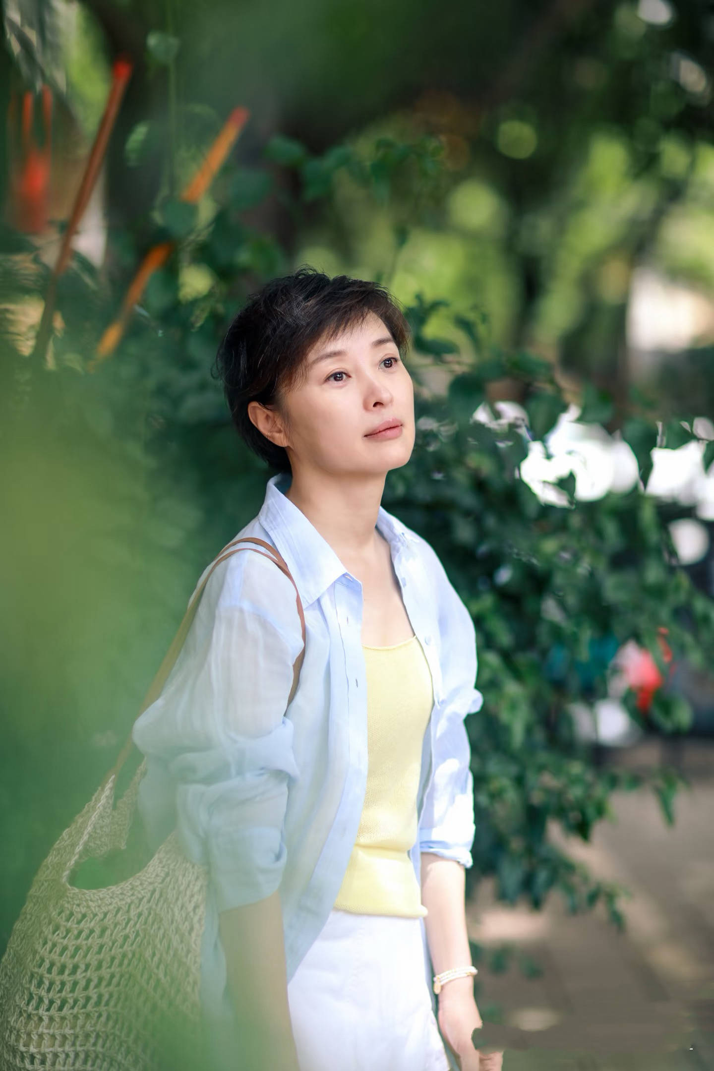 说起来吴越真是把“松弛感”刻进了骨子里。镜头里她完全不避讳脸上的细纹,头发随意地抓两下就出镜,可偏偏那份自在劲儿比精修图还动人。她穿衣服也特别有一套——同一件衬衫换个颜色,配不同的包包就能穿出两种感觉:浅粉色配绿包是元气少女,换成白色衬衫搭棕色帆布包,又多了几分文艺青年的随性。这种不费力的时髦,大概就是“岁月从不败美人”的最好证明吧。